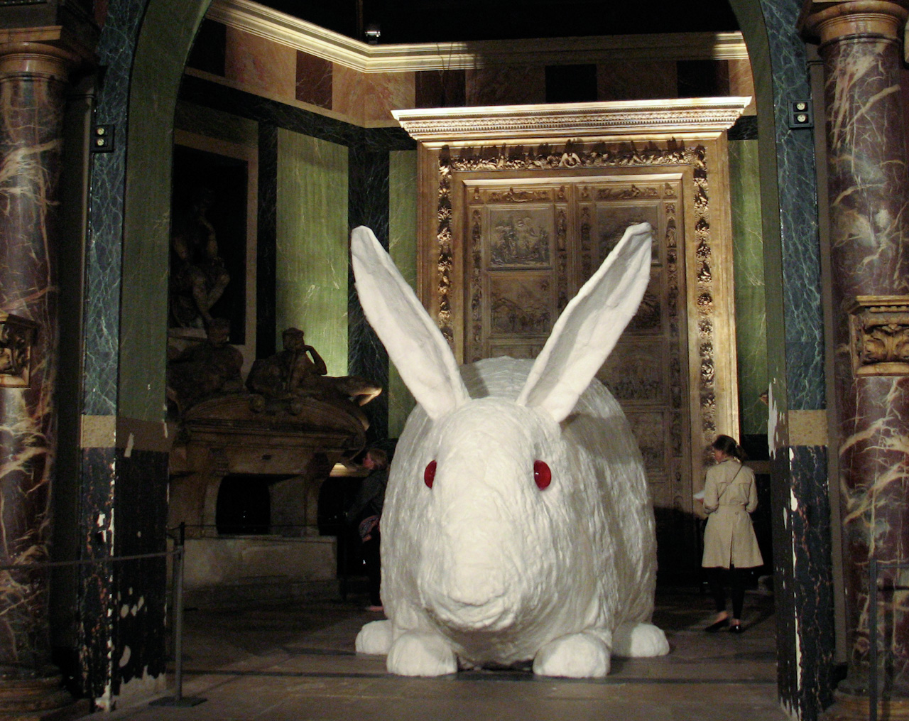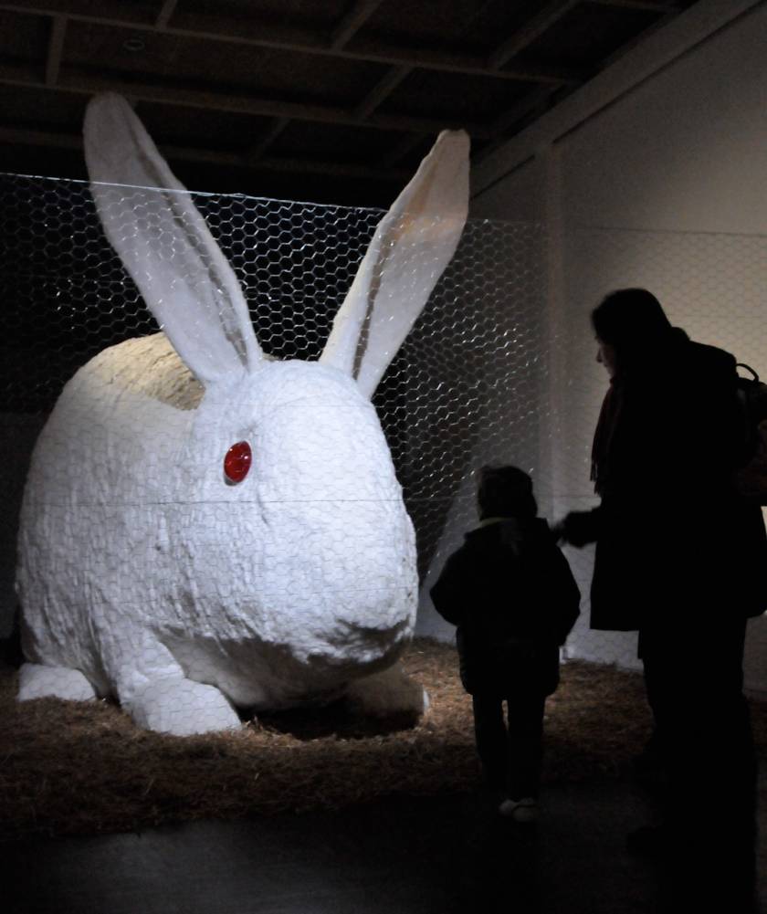 Sous ses airs sympathique et familier, avec sa robe blanche immaculée et ses formes tout en rondeurs, ce lapin géant évoque l’univers réconfortant de l’enfance. Great Stuffed Rabbit se révèle cependant morbide quand on apprend qu’il a fallu assembler 650 peaux de lapins pour l’habiller. Autant de petites âmes sacrifiées pour créer un gigantesque objet, mais est-ce si dramatique que cela quand on sait que le nombre de peaux de lapin mises sur la marché s’estime au niveau mondial à environ un milliard par année ? Certains se rassurent en sachant qu’il ne s’agit là que des dégâts collatéraux à notre consommation de viande.