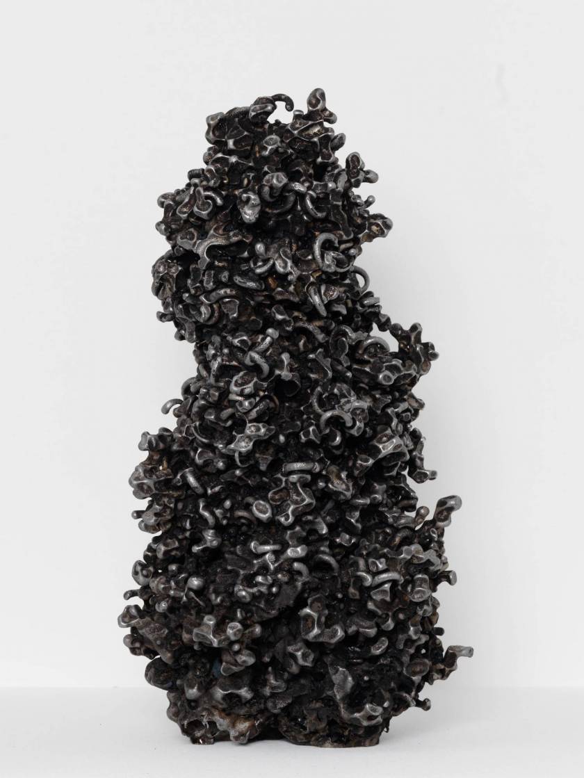 Dans un questionnement sur l’apparition des formes, Gonzenbach reproduit des phénomènes géologiques avec d’autres matériaux. Pour créer des stalagmites, il verse de l’aluminium en fusion dans des récipients remplis de pâtes en blé dur. Le métal liquide se fraie un chemin entre les pâtes, pour se solidifier un peu plus tard, créant une empreinte négative des pâtes. La forme exacte de la sauce tomate si on pouvait la visualiser entre les nouilles. Ces formes primitives d’aspect ressemblent à des statuettes du magdalénien.