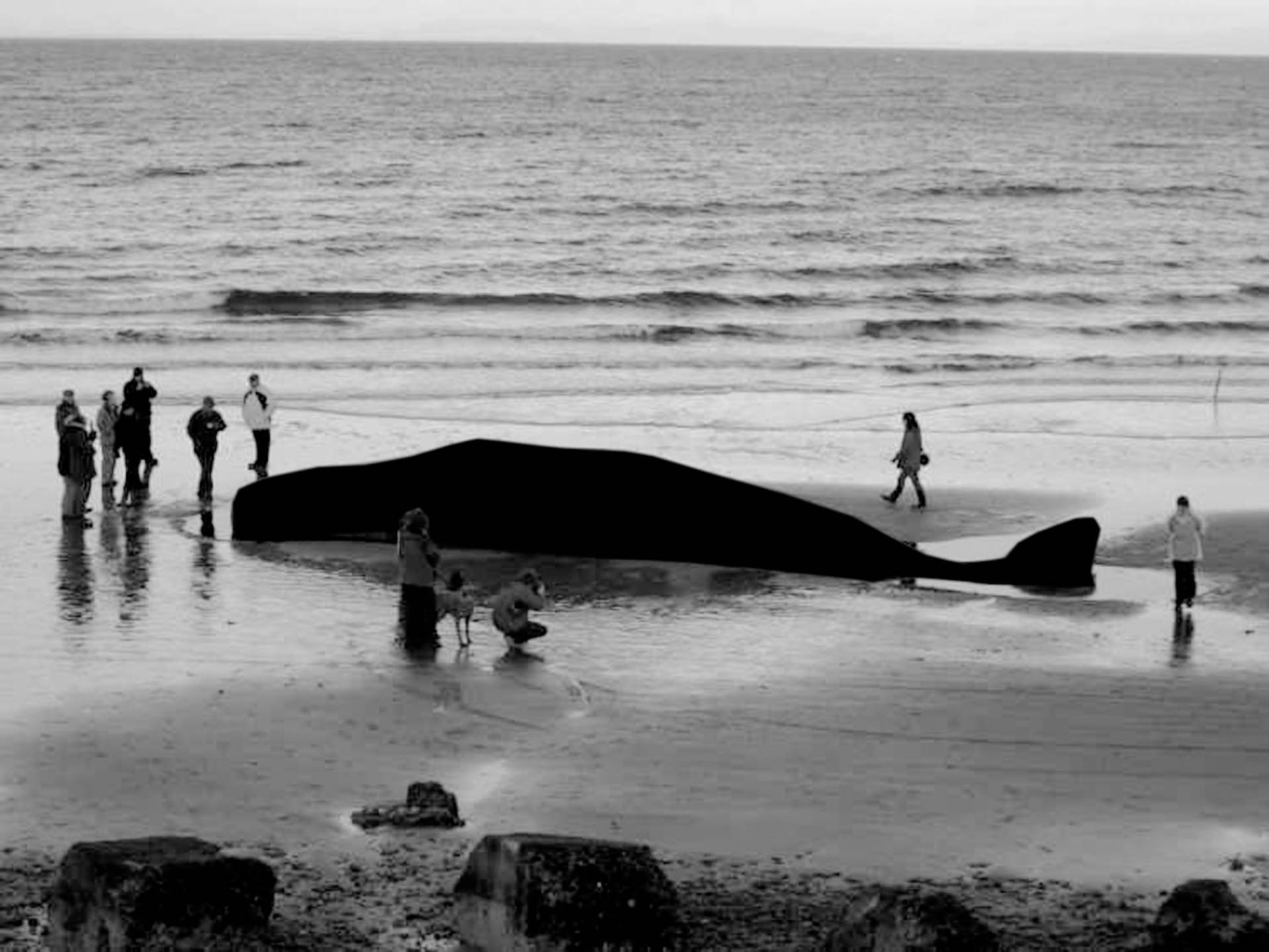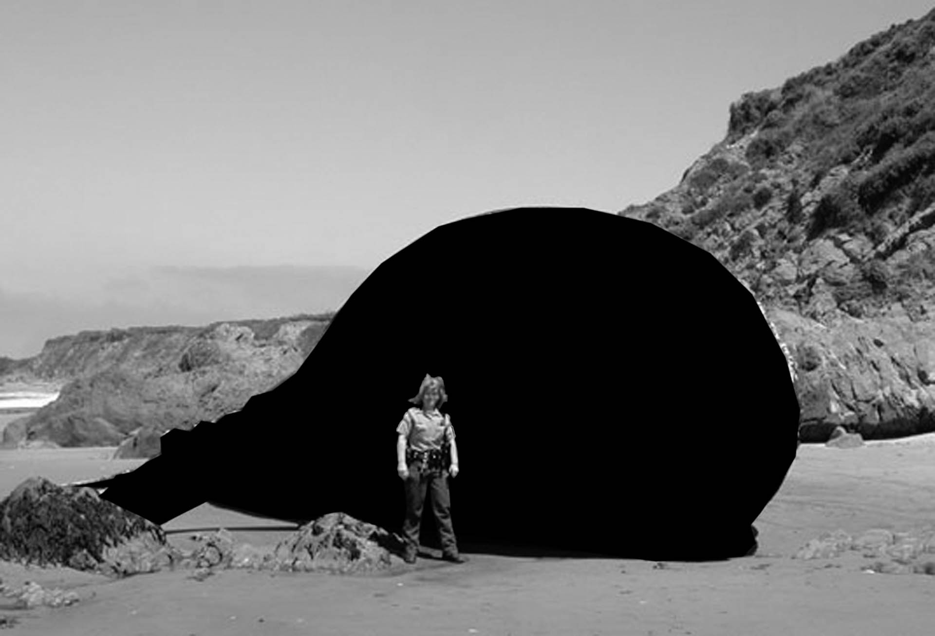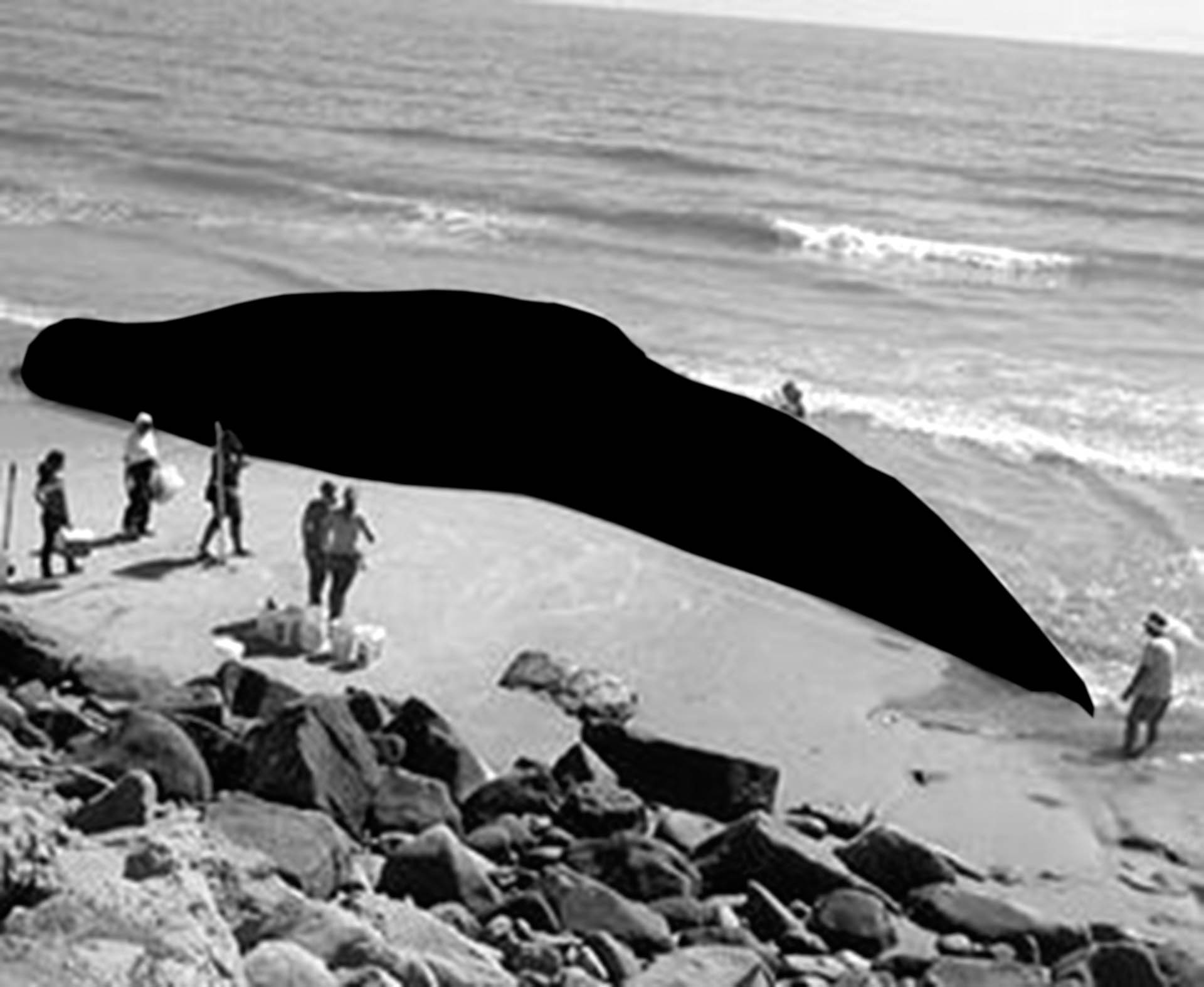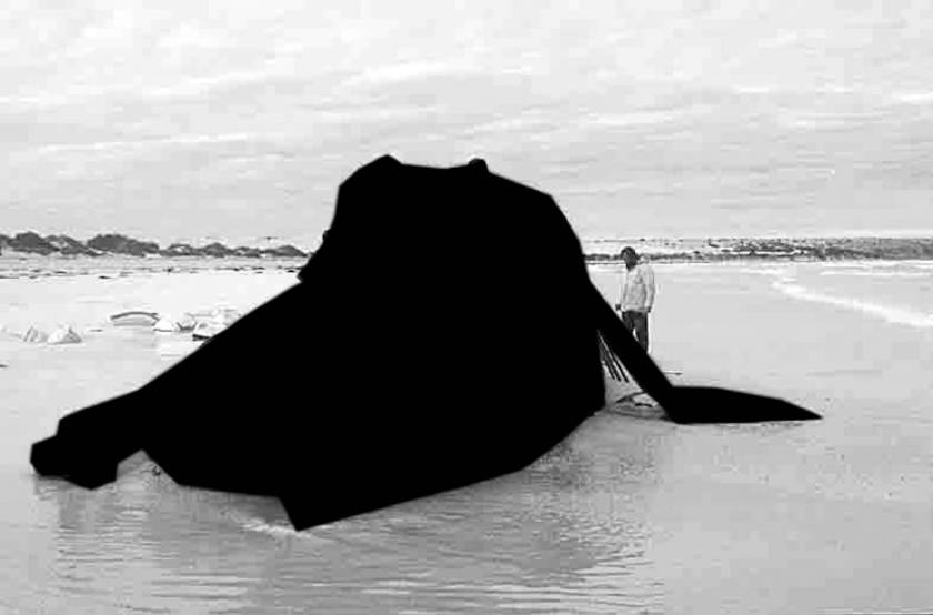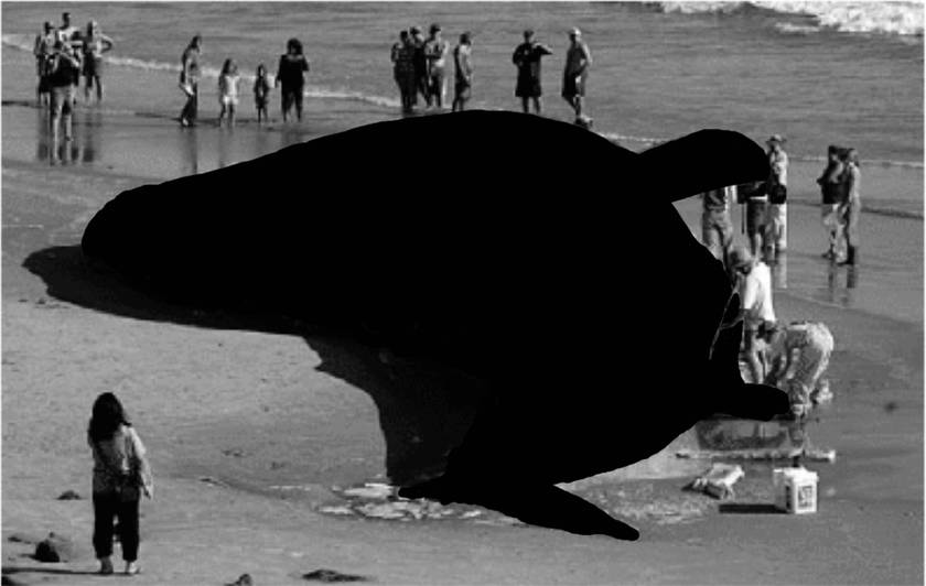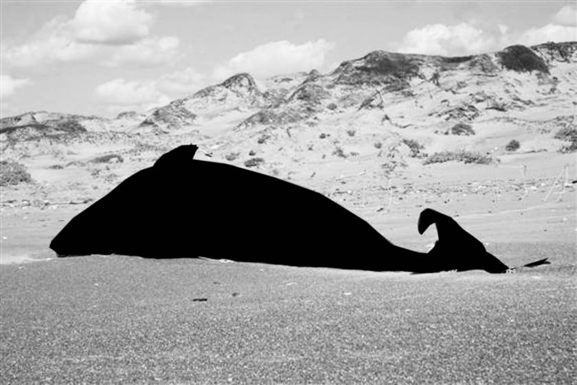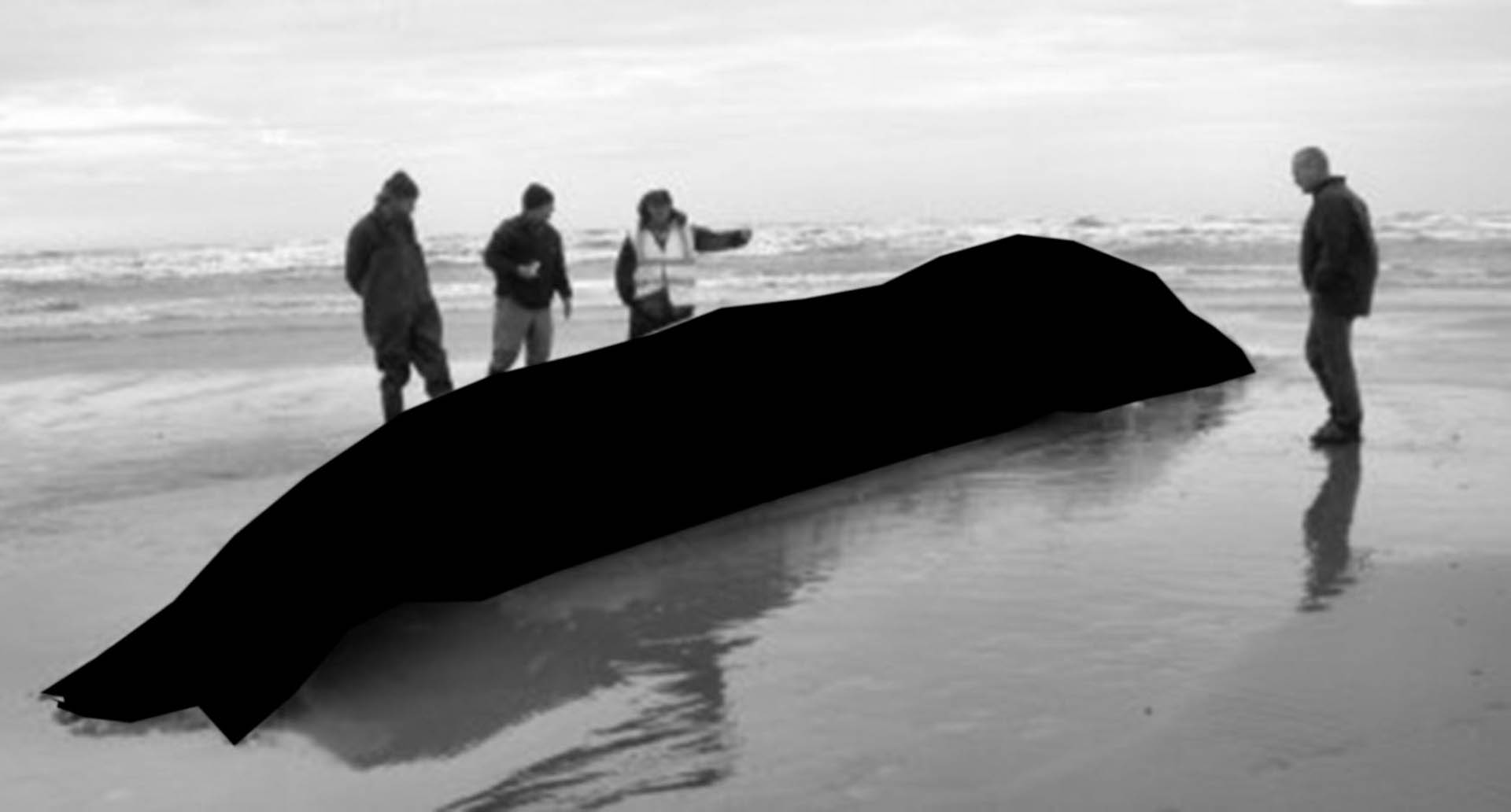 Dès que le corps massif du cétacé quitte son élément aquatique pour s’échouer sur une plage, l’animal meurt effondré sous son propre poids, à l’instar d’une étoile qui s’effondre sous l’intensité gravitationnel de son noyau, pour former un trou noir dont rien n’échappe, pas même la lumière. Avec la mort de l’animal, c’est tout un monde qui disparaît, un univers auquel nous n’aurons plus jamais accès et dont seul le contour reste visible.