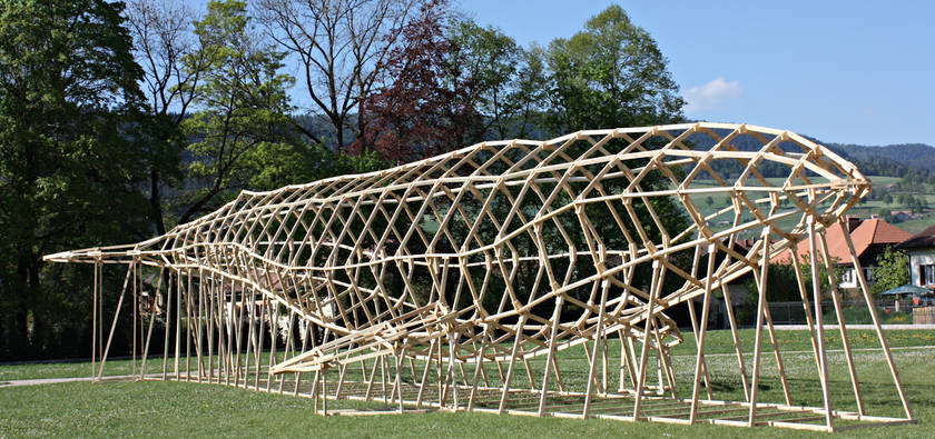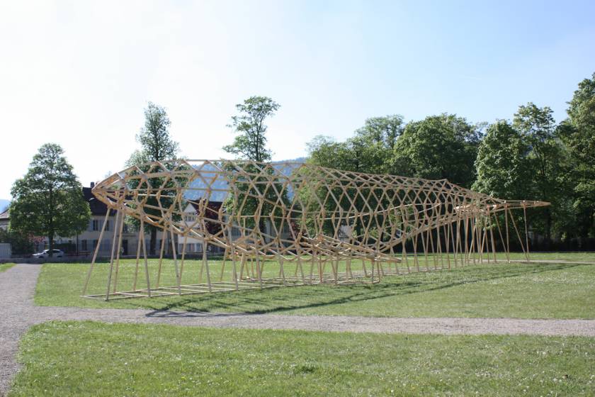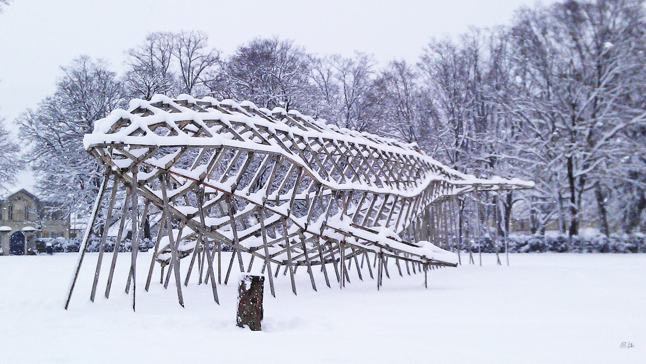 Zeppelin est la version aérienne de la sculpture Life Size, un maillage en bois en dimensions exactes d'une baleine bleue. En plaçant la baleine à l'extérieur, Christian Gonzenbach remplace l'élément liquide du cétacé par l'air du ciel. Et l'évolution continue.